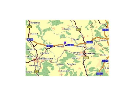 Über 2 Autobahnauffahrten auf die A6 (jeweils ca. 2 - 3 km entfernt) ist man schnell untwerwegs in Richtung Nürnberg oder Heilbronn. Das Autobahnkreuz Feuchtwangen / Crailsheim am Schnittpunkt der A6 und der A7 ist in 15 Minuten erreicht